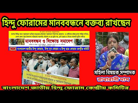 সহদেশের বিভিন্ন স্থানে পূজামন্ডপে প্রতিমা ভাংচুরের প্রতিবাদে ও পূজামন্ডপে নিরাপত্তা জোরদার, দোষীদের দৃষ্টান্তমূলক শাস্তি,বক্তব্য রাখছেন মহিলা বিষয়ক সম্পাদক রাধারানী দাস।BNHF